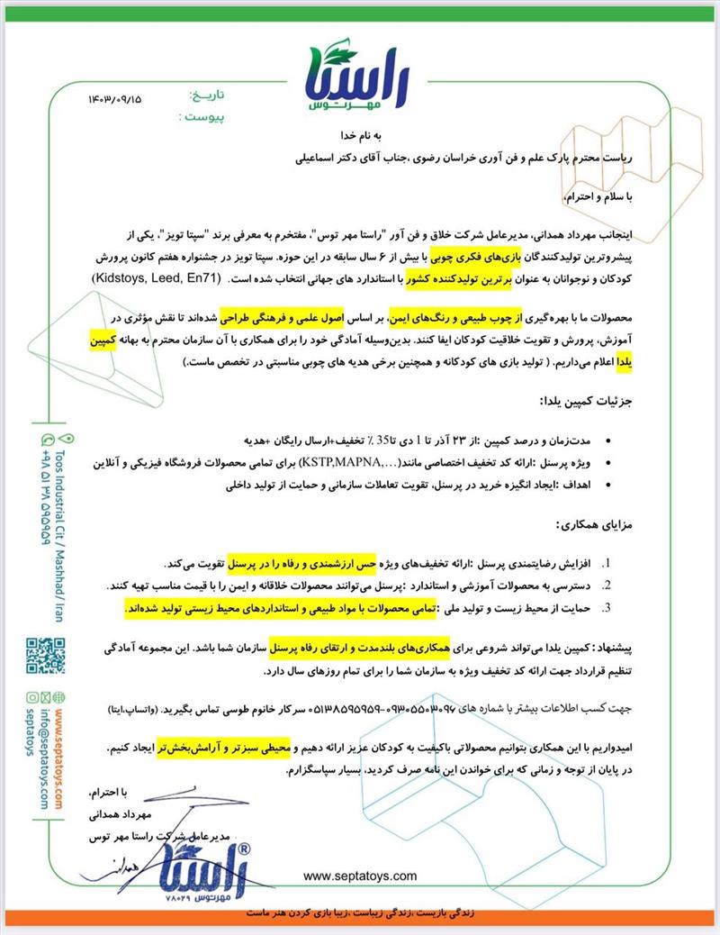 پیام تبریک پارک علم و فناوری خراسان به مناسبت عیدسعید فطر و نوروز باستانی ۰۱ فروردین ۱۴۰۵