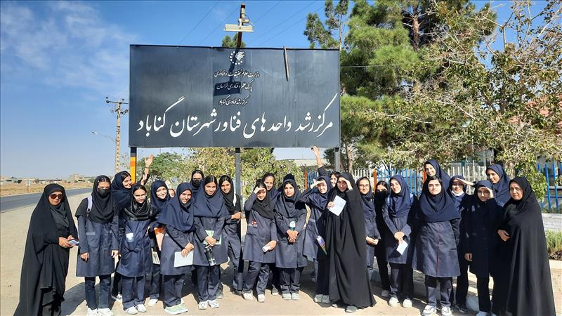 جمعی از دانش‌آموزان دختر دبیرستان دوره دوم فرزانگان گناباد در قالب دو گروه 28 و 18 نفره به همراه چهار نفر از مربیان خود، پیرامون درس «پژوهش و انجام آزمایشات»، از مرکز رشد فناوری گناباد و چند شرکت مستقر در آن بازدید کردند.