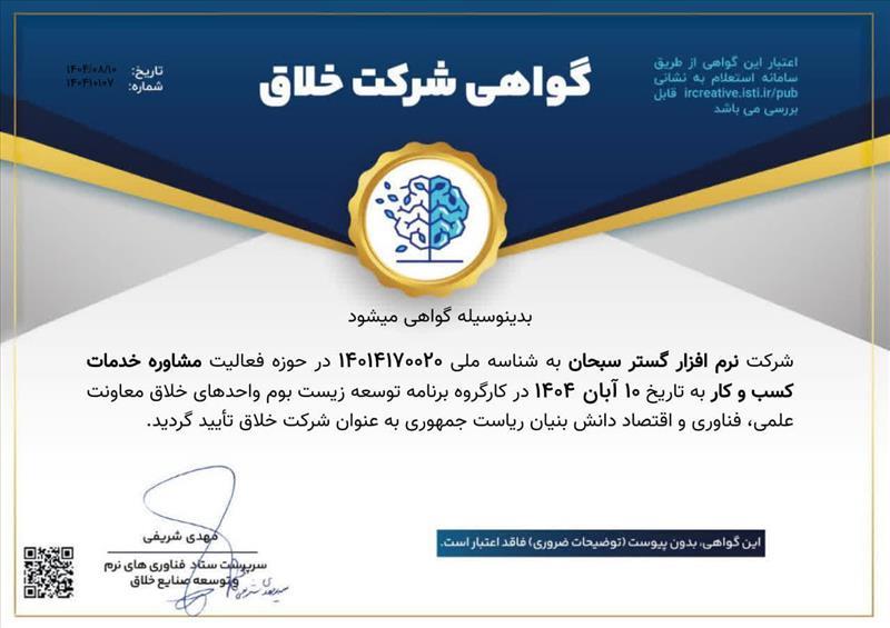 شرکت فناور نرم‌افزارگستر سبحان مستقر در مرکز رشد واحدهای فناوری سبزوار، به جمع شرکت‌های حوزه صنایع خلاق معاونت علمی، فناوری و اقتصاد دانش‌بنیان ریاست‌جمهوری پیوست.